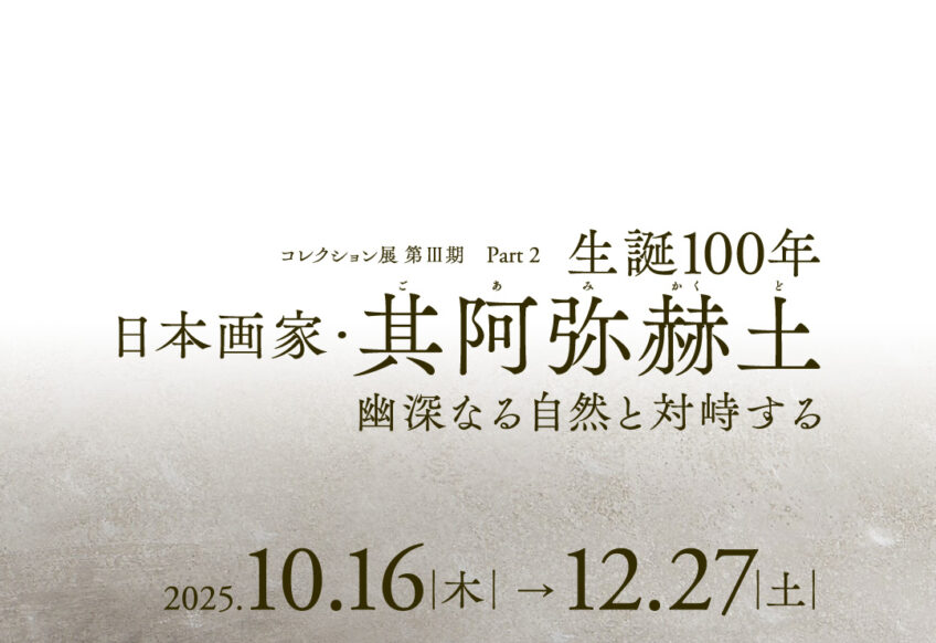 呉市出身の日本画家・其阿弥赫土ごあみかくど(1925-2019)の生誕100年にあたり、当館コレクションの中から其阿弥赫土の作品を特集展示します。其阿弥は、1993年より東広島市黒瀬町を制作の拠点とし生涯を終えた、郷土...