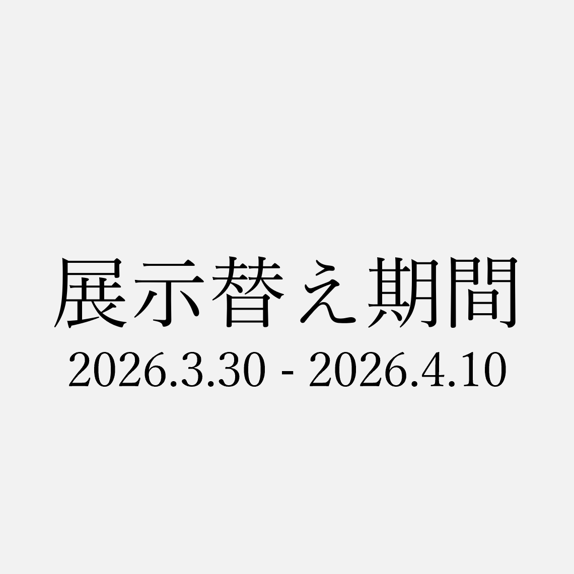 2026年3月30日(月曜日)~2026年4月10日(金曜日)の間は展示替え期間となっており、展示室へご入場いただけません。